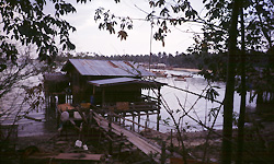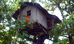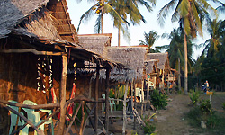 竹とヤシの葉で編んだ"土人小屋"に寝泊まりする